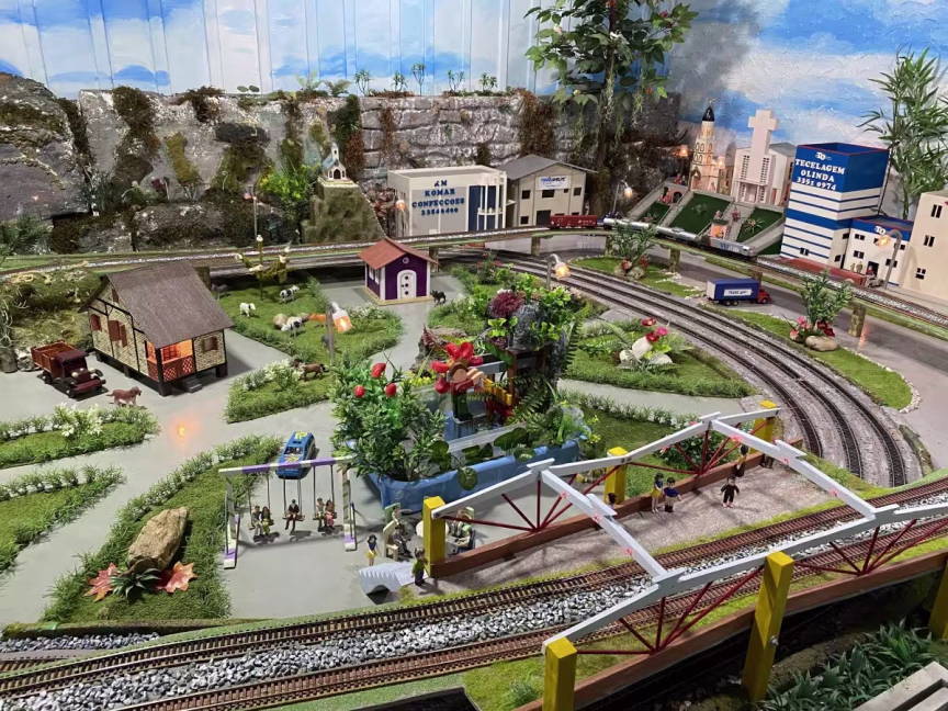Francisco explica que o trenzinho foi inserido na Minicidade após ele receber uma maquete de uma pessoa de São Paulo há seis anos. “Hoje, está na Suíça. Só que essa maquete é muito detalhada, então eu não consegui montar. Então, eu resolvi fazer a minha própria maquete”, recorda.