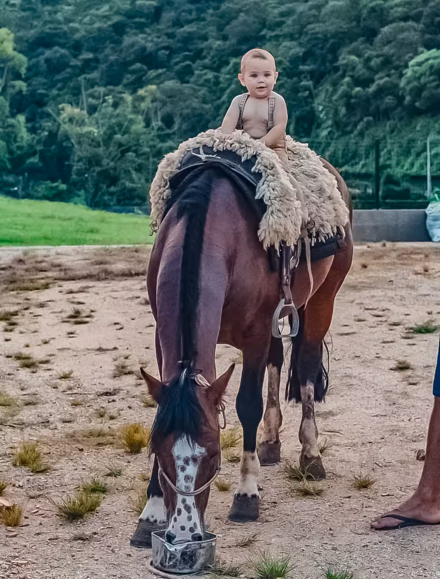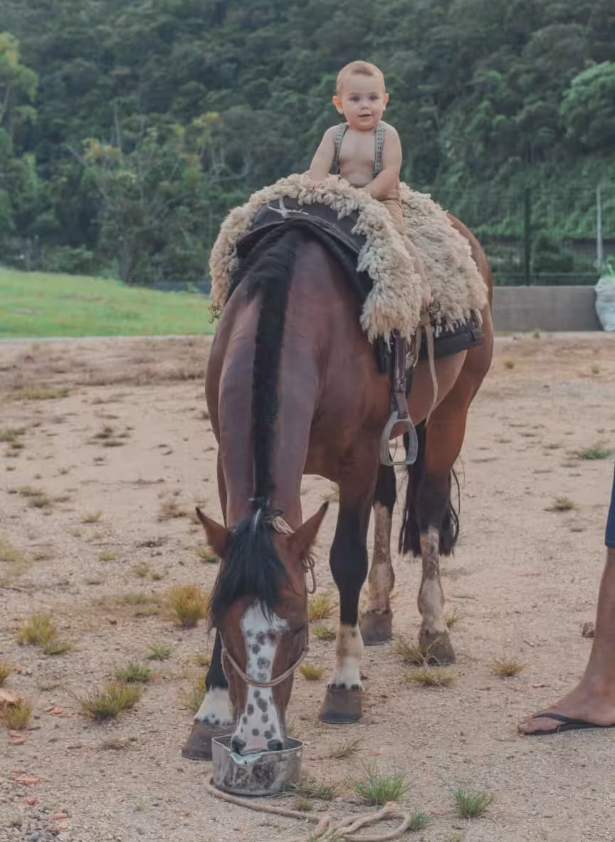 Mal podia se segurar nos próprios pés, mas José já desejava ajudar a tratar os animais e cavalgar pelas vastas extensões de terra.