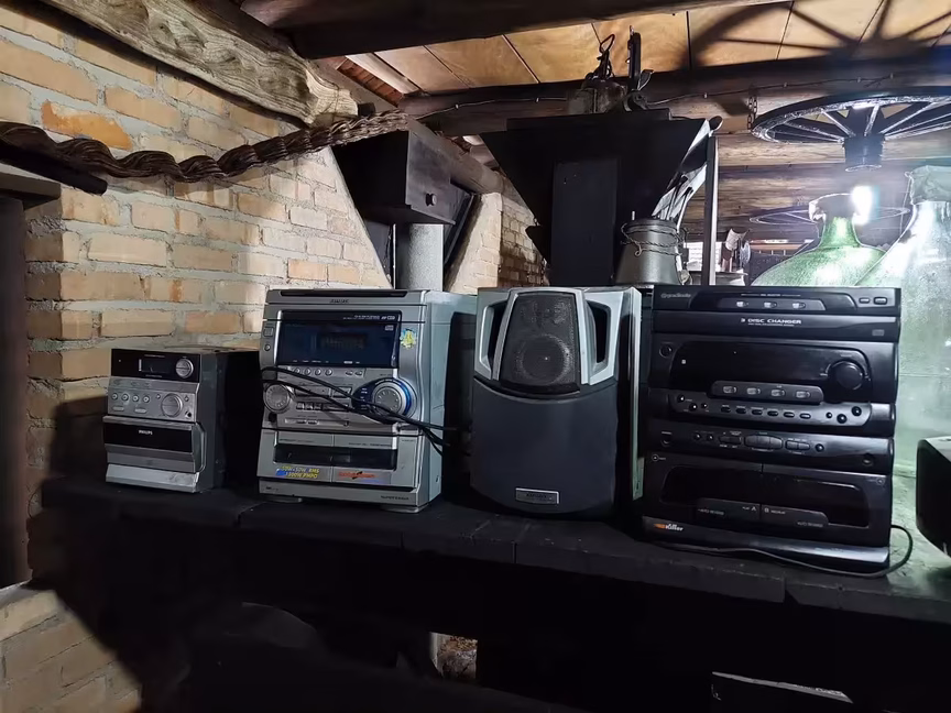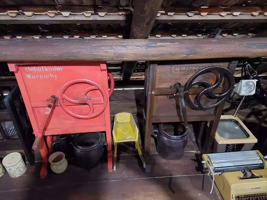 Armários, talheres, discos de vinil, garapeiras e até carroças compartilham o espaço, cada um contando sua própria narrativa silenciosa.