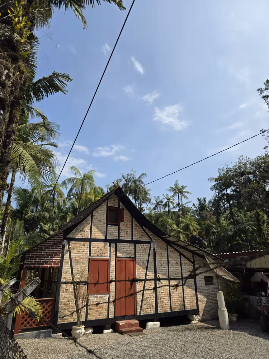 As casas em estilo germânico, com suas fachadas enxaimel, repousam graciosamente entre as encostas da Serra do Itajaí, criando uma paisagem digna de cartões postais.