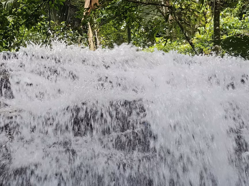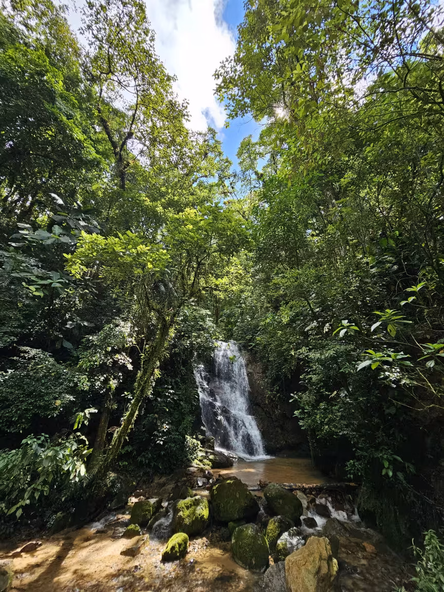 Além da imponência da queda d’água, o local é ideal para famílias e crianças, pois o riacho, de águas rasas, cria um ambiente seguro e acolhedor.