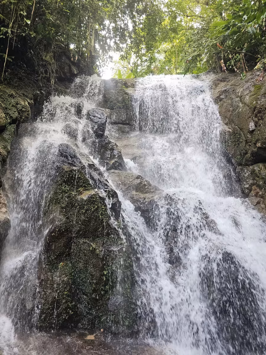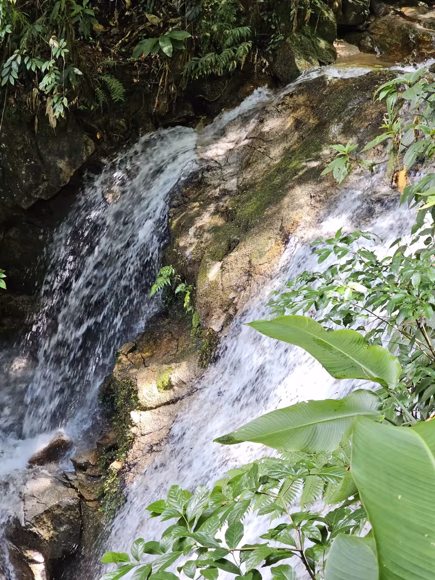 A poucos passos da estrada principal, o acesso à cachoeira é simples e rápido, pois uma breve trilha de apenas dois minutos leva a esse refúgio natural.