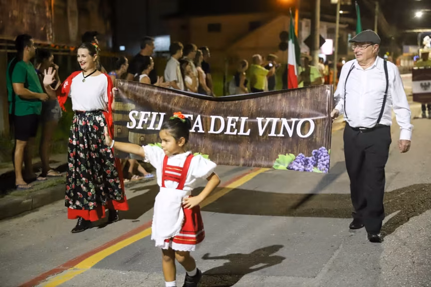 O evento como todo começou por volta das 18h30, com o desfile que percorreu a rua Brusque. O percurso teve início no Centro e destino ao salão Cristo Rei, palco da 6ª Sfilata del Vino. Diversas atrações animaram a festa com música italiana.