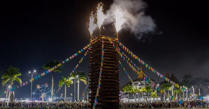 Acendimento da fogueira gigante marca segundo dia do Arraiá Solidário de Brusque