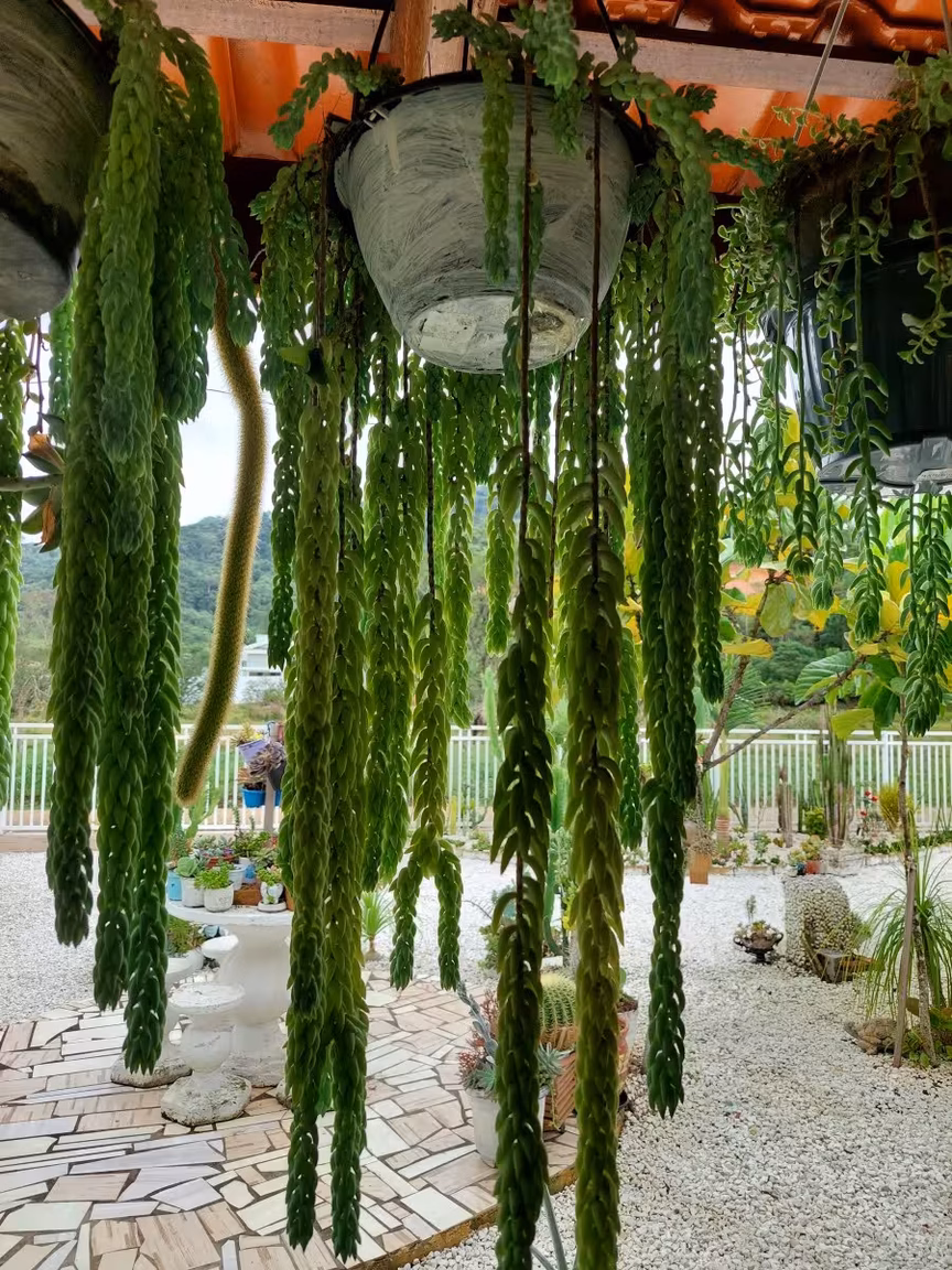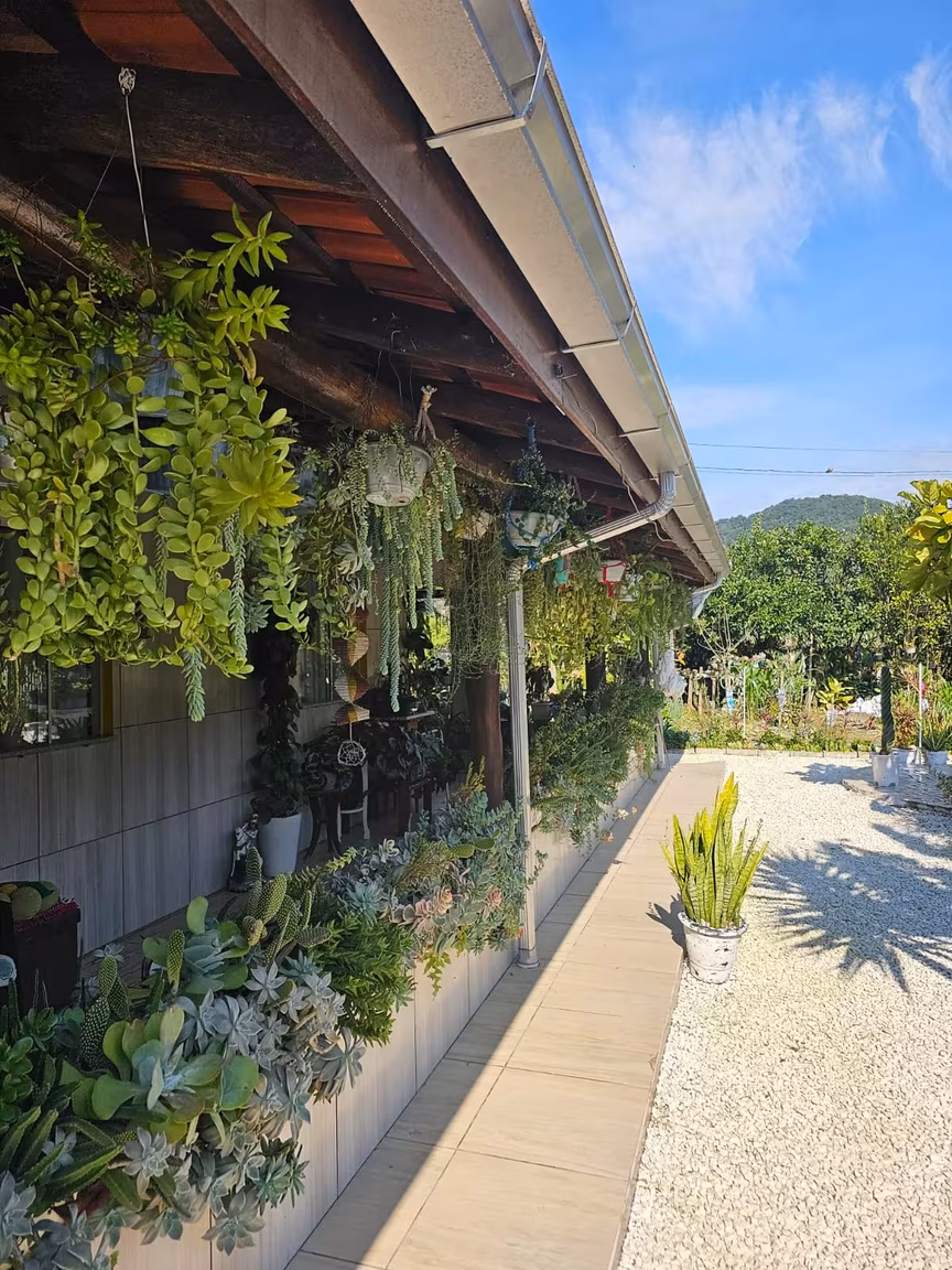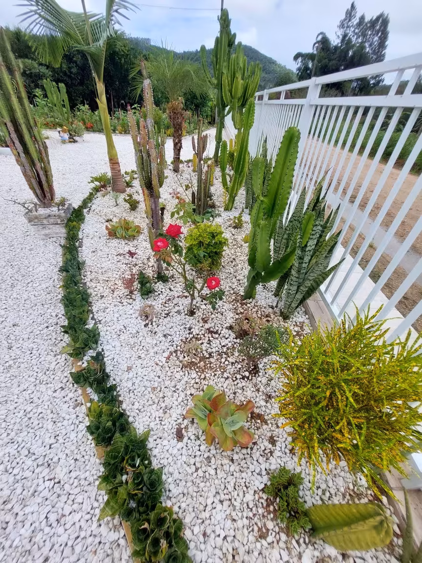 Em sua propriedade, um verdadeiro paraíso se revela, repleto de flores vibrantes, plantas exuberantes, cactos intrigantes, suculentas delicadas e orquídeas de beleza ímpar.