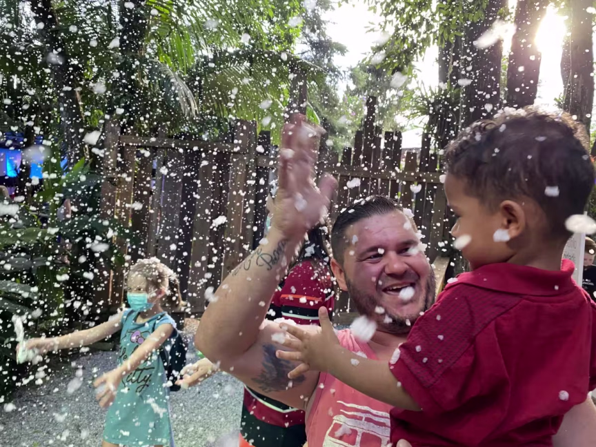 Entre eles, estão o empresário de Brusque, Inácio Nuss Junior, de 41 anos de idade, e o filho dele, Eduardo Cervi Nuss, 6. É a primeira vez que os dois visitam o espaço. “Achava ele muito pequenininho para trazer antes, mas ele estava ansioso. Assistimos vídeos antes para ele entender, temos amigos que trabalham aqui”, conta o pai.