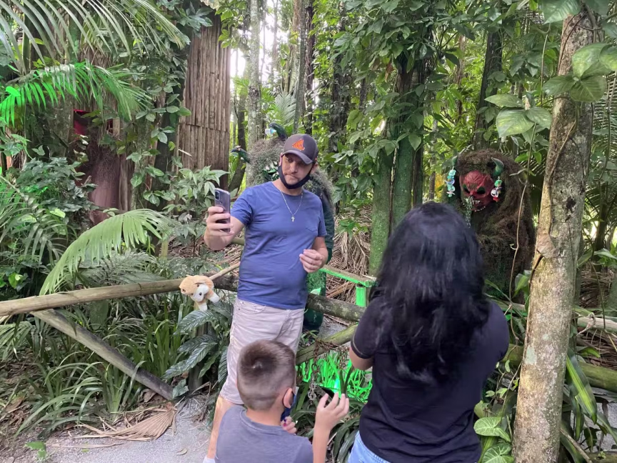 Durante o trajeto, diversas atrações encantam e também assustam. Entre gritos, risadas e até choro de algumas crianças, o caminho finaliza com sorrisos nos rostos.