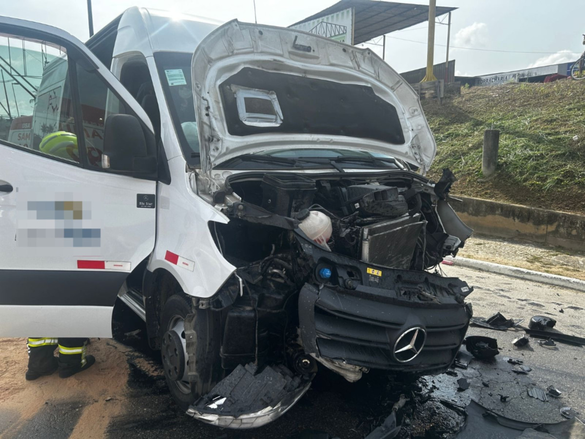 O motorista da van, que inicialmente havia permanecido dentro do veículo, também está sendo retirado do banco pelos bombeiros e pelo Samu. Ele recebeu o colar cervical, mas se movimenta normalmente e está consciente.