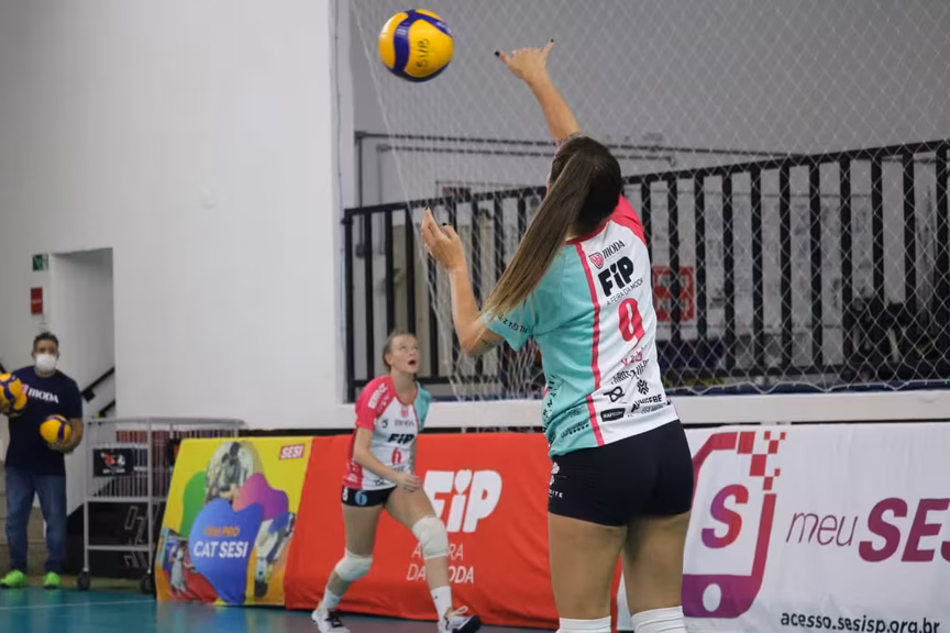 Já na sequência, em bola dividida na rede, Julia levou a melhor e fez o 12° ponto brusquense. Um ace de Geovanna fez a diferença aumentar para 8 pontos e obrigou o técnico do Sesi a pedir tempo.